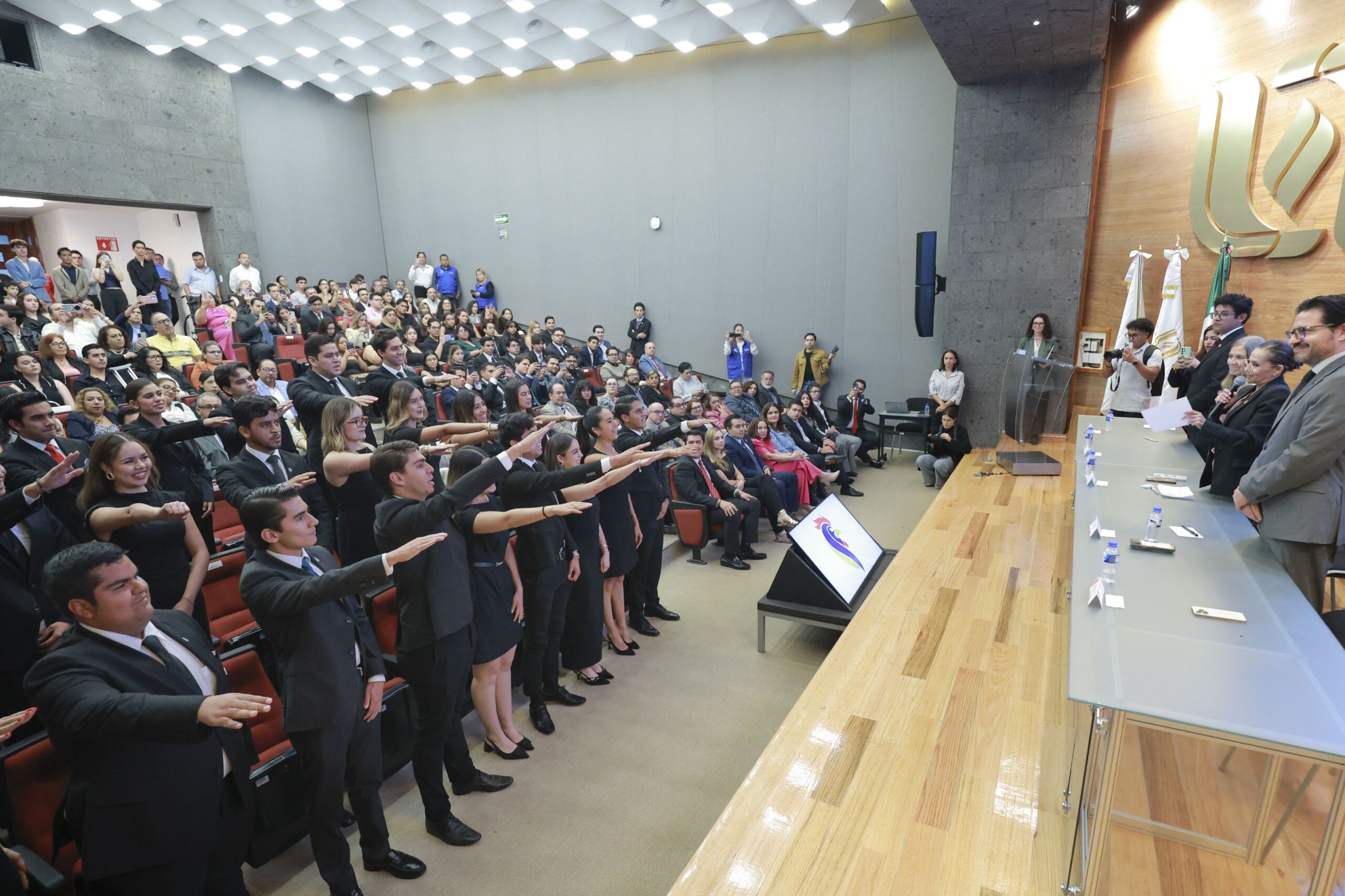 La ceremonia estuvo encabezados por Sandra Yesenia Pinzón Castro, rectora de la Universidad Autónoma de Aguascalientes (UAA) quien en su mensaje destacó que es fundamental para que las universidades sigan siendo espacios de pensamiento libre y crítico, pluralidad, humanismo, y generación de conocimiento.