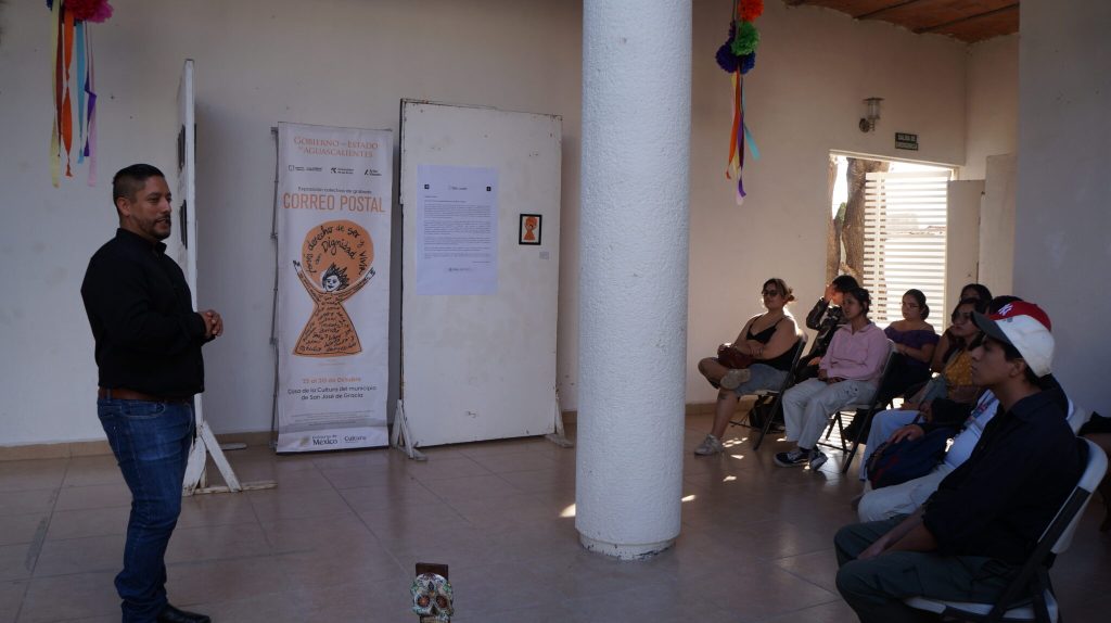 Como parte de las actividades del Departamento de Vinculación de la Universidad de las Artes y la Academia de Gráfica y Dibujo de la Licenciatura en Artes Visuales (LAV), se promovió la exposición de dos proyectos gráficos el de “Correo Postal” y el de “Acervo de la Licenciatura en Artes Visuales”, en 5 municipios de Aguascalientes.