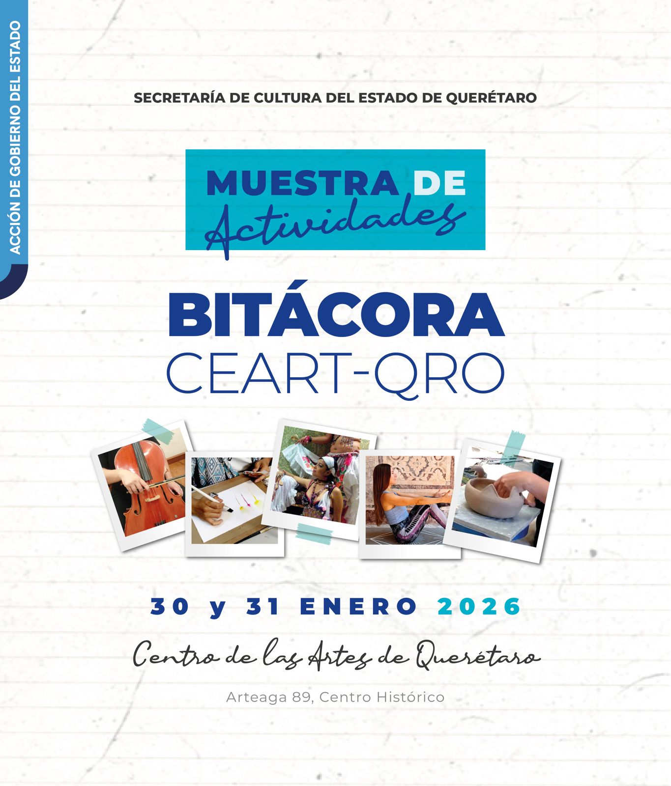 Los días 30 y 31 de enero se llevará a cabo en el Centro de las Artes de Querétaro (CEART), con acceso gratuito, la Muestra de Actividades Bitácora CEART-QRO.