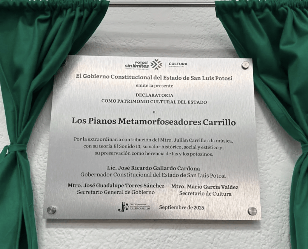Durante el acto, también se develó la placa por la Declaratoria de la colección de los Pianos Metamorfoseadores Carrillo, como Patrimonio Cultural del Estado.