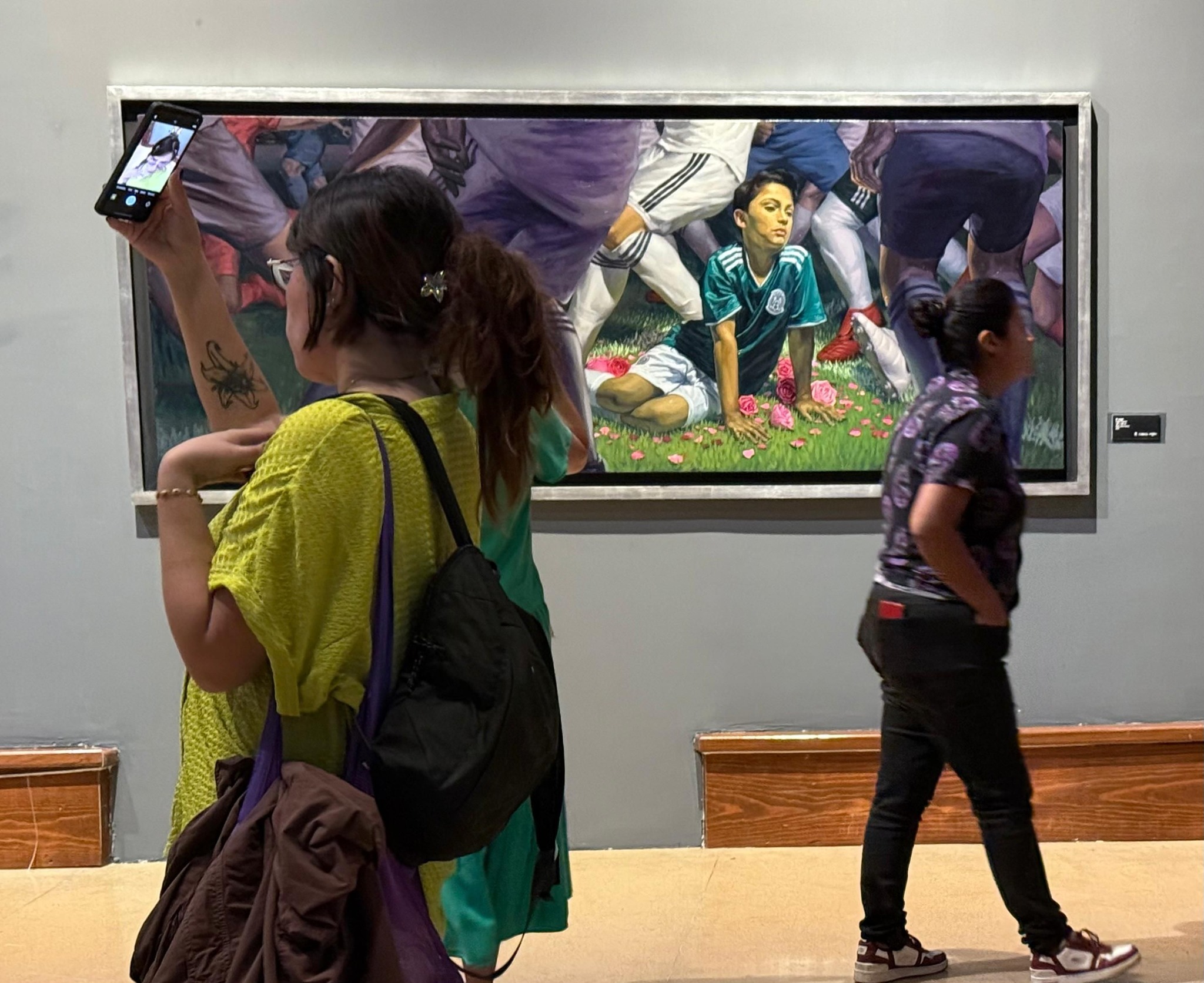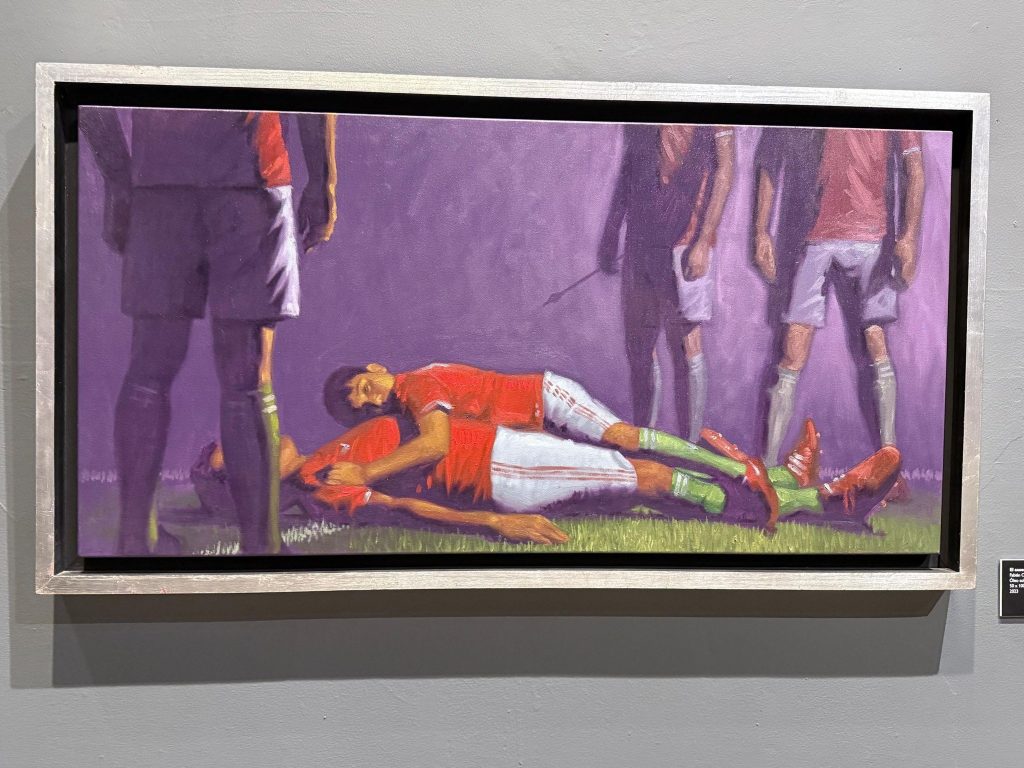 Pero también la selección presente en esta exposición que materializa la exploración y creación de un submundo de ficciones y narrativas que surgen de la apropiación hacia una cultura rígida como el fútbol.