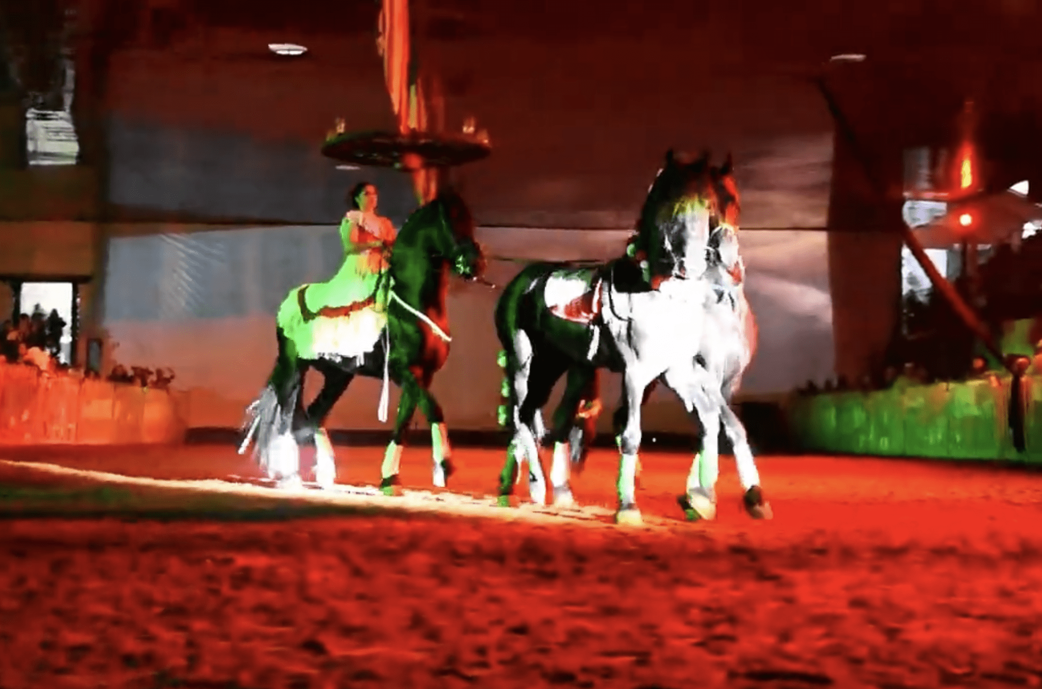 En cada show los jinetes y caballos DOMECQ enmarcan cada uno de los ejercicios de Alta Escuela, Doma en Libertad, y Enganches, creando en conjunto, un espectáculo sin precedentes.