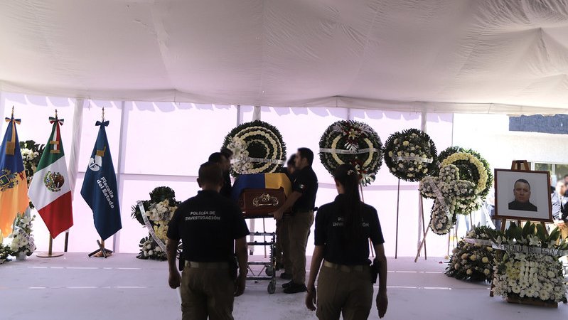 Y en Jalisco siguen de luto, y en este ambiente de dolor, por los hechos acontecidos en la entidad a consecuencia del operativo que derivó en la muerte de “El Mencho, la Fiscalía del Estado rindió un homenaje de cuerpo presente a Mario Fernando Tejeda Medina, Policía de Investigación que falleció el domingo en cumplimiento de su deber.
