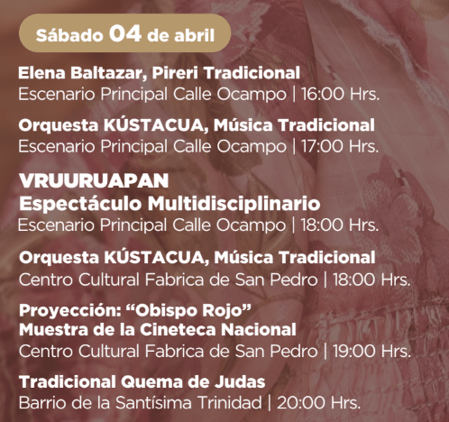 Una vez más el corazón de la ciudad será el punto de encuentro para turistas de todo el mundo y nuevos públicos que buscan sumergirse en la tradición, el arte y la identidad que emana de la “Perla del Cupatizio”.