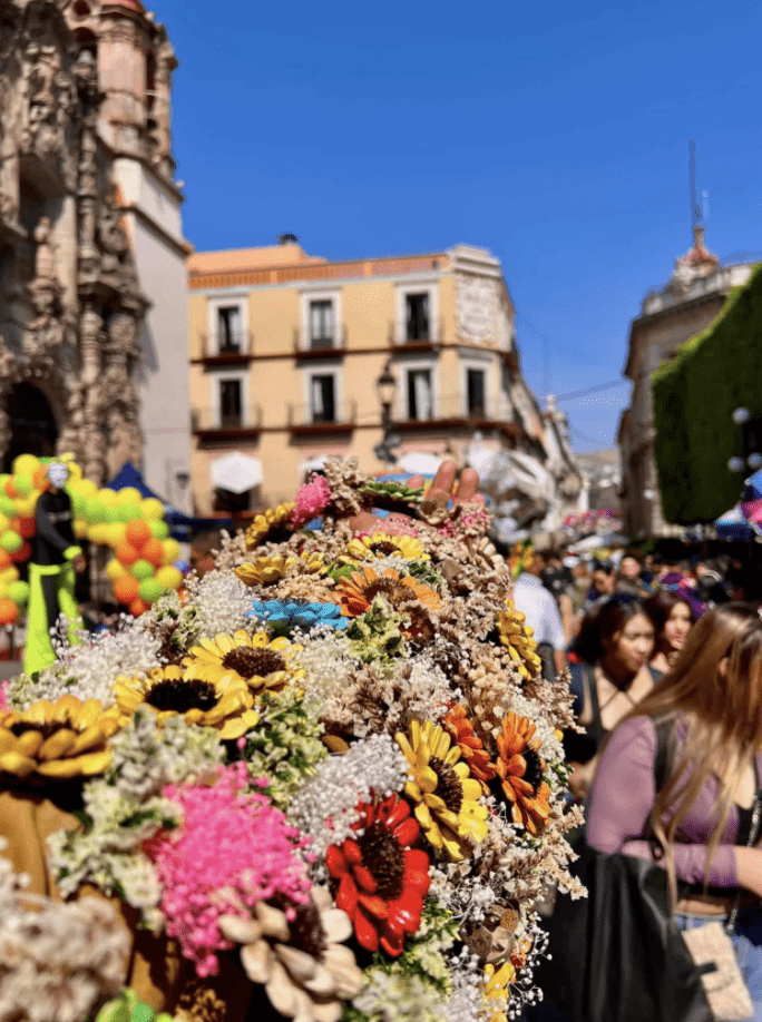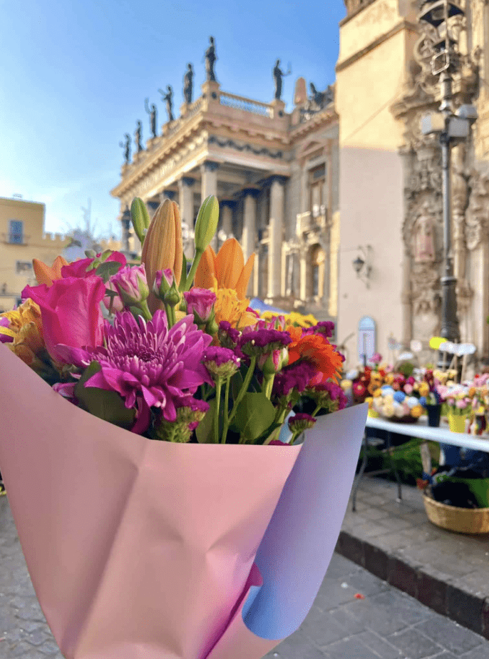 El Jardín Unión de la ciudad de Guanajuato, se vistió de tradición en el Día de las Flores, tradición que consiste en regalar flores a los paseantes como ofrenda simbólica a la Virgen en el Viernes de Dolores.
