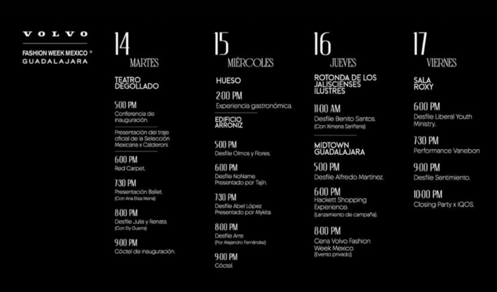 A continuación te compartimos la agenda para que no te pierdas lo mejor de la moda en Guadalajara.