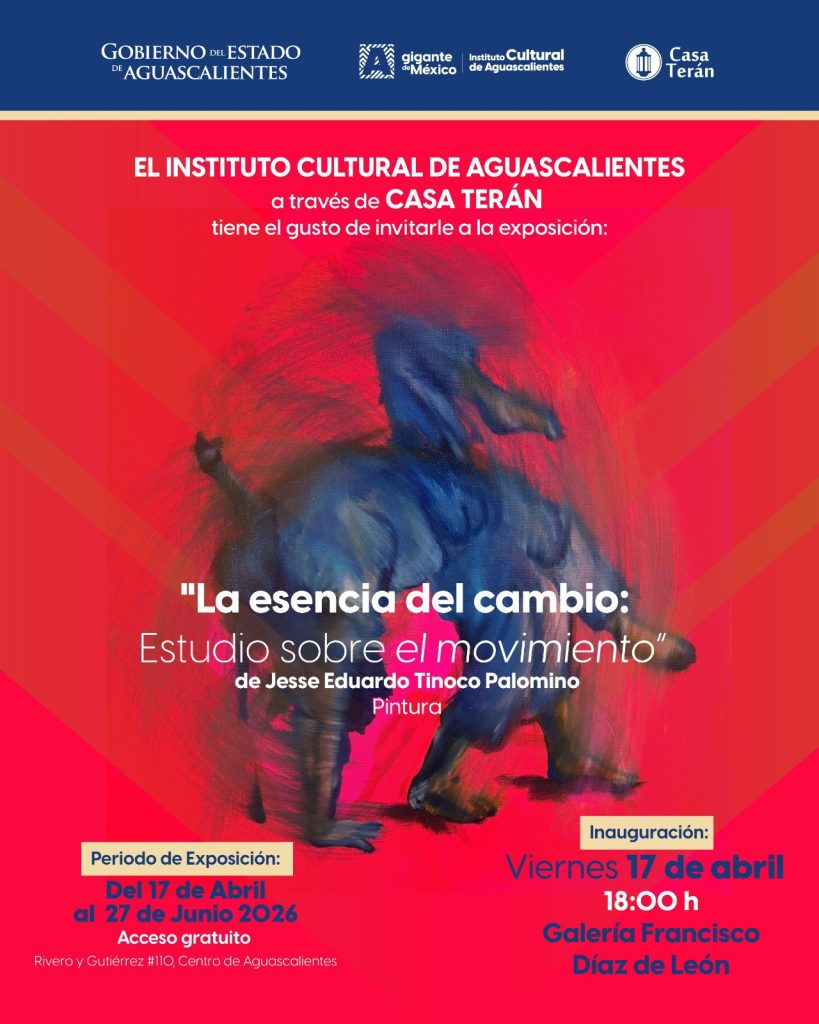 Como arranque de los festejos por el 34 aniversario del Centro Cultural Casa Terán de la ciudad de Aguascalientes, este viernes 17 de abril a las 18 horas, se inaugurará la exposición «La esencia del cambio: Estudio sobre el movimiento» de Jesse Eduardo Tinoco Palomino.